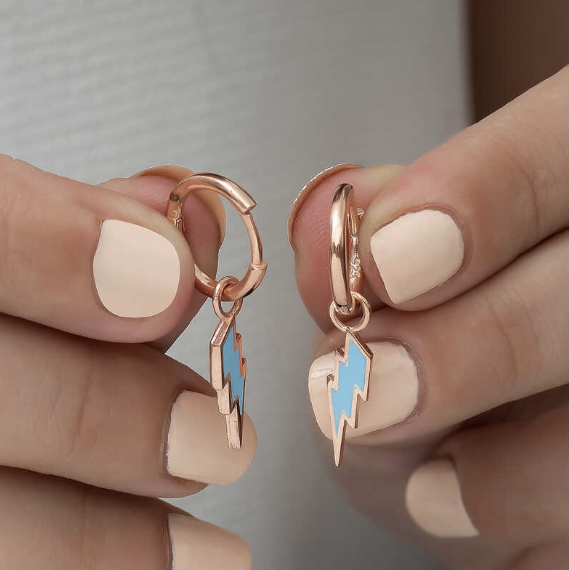 14K Rose Gold Plated Blue Lightning Earrings 925 Sterling Silver