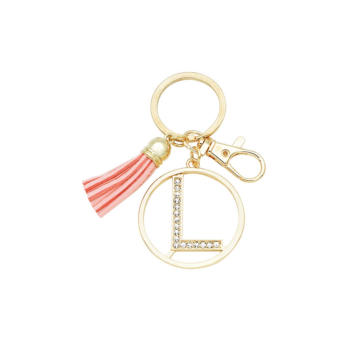 Alphabet Initial Letter Stainless Steel Pink Tassel Keychain